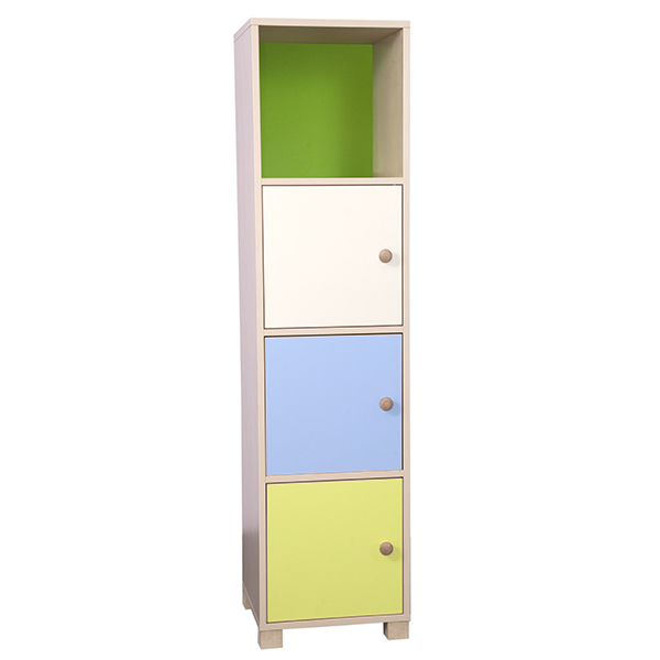 Dulapuri modulare pentru gradinita, cu spatii flexibile pentru depozitare ,permitand cele mai variate compozitii in sala de grupa. Mobilier modular copii cu dulapuri depozitare din pal melaminat 18 mm grosime, canturile protejate cu ABS, picioare cu inaltimea de 50 mm , feronerie de calitate superioara. Ca o nota distinctiva, spatele dulapurilor este confectionat din mdf alb. Culorile sunt pastelate iar atmosfera din sala de grupa devine prietenoasa si calda. Dulapurile se cupleaza unul de altul pentru a forma configuratia dorita.